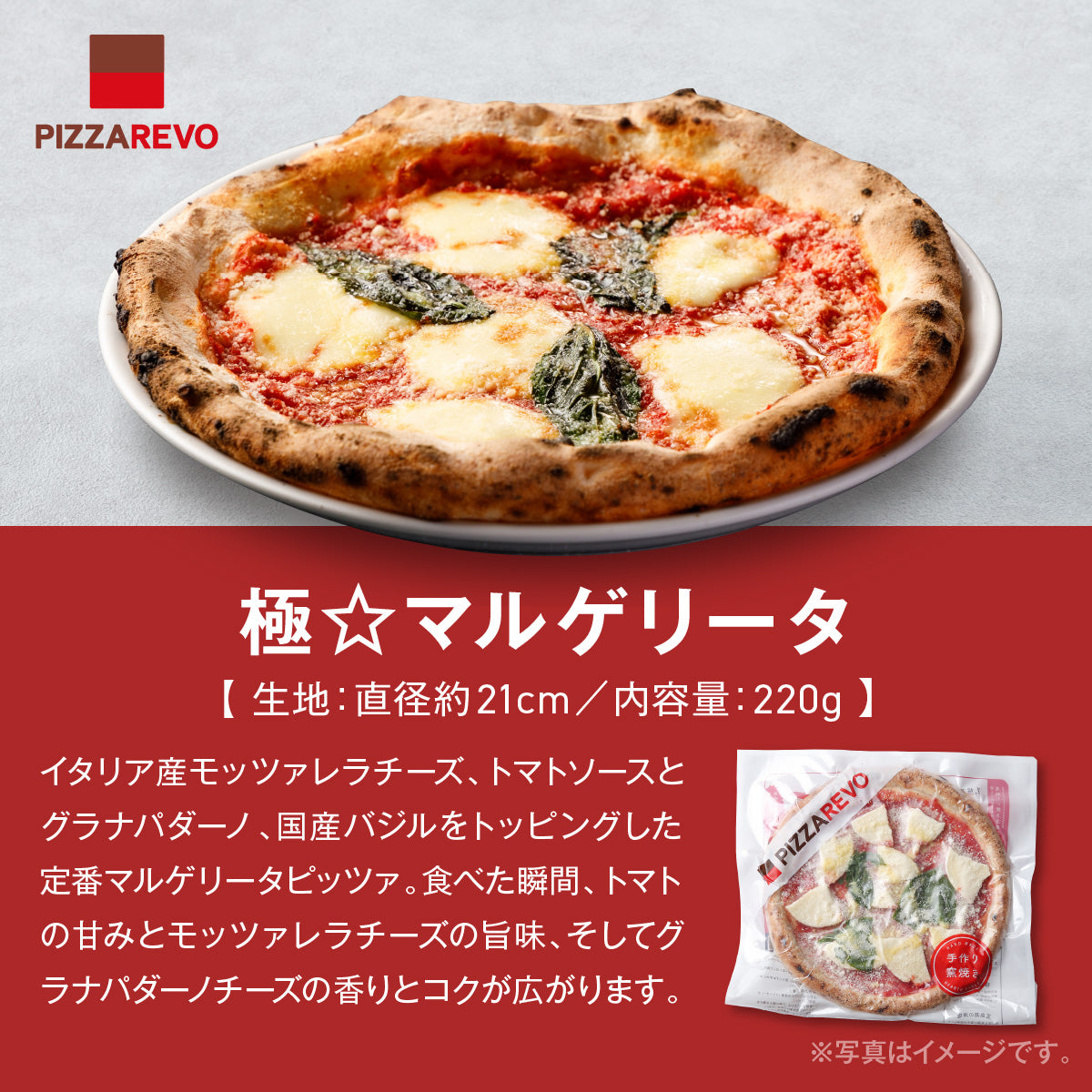 PIZZAREVOで1番人気のピザ。イタリア産モッツァレラチーズ、トマトソースとグラナパダーノ、国産バジルをトッピングした定番マルゲリータピッツァ。
