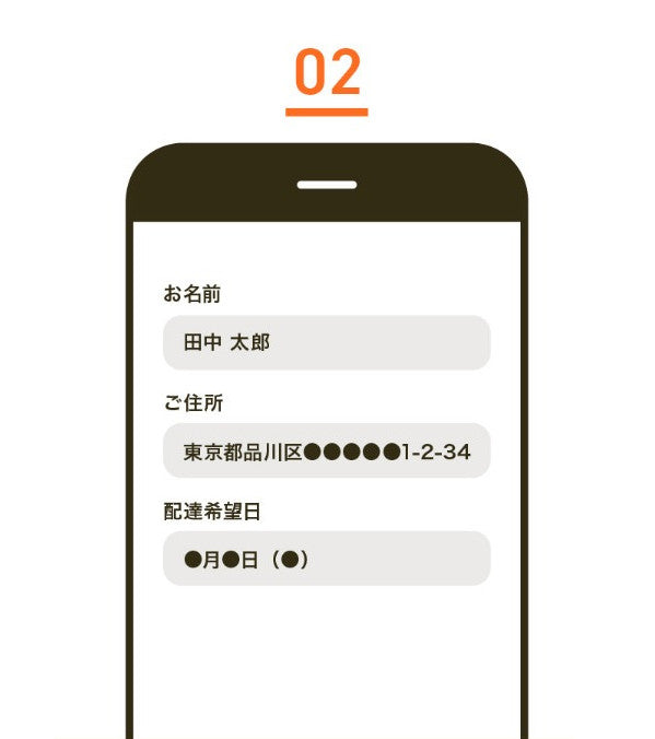 受け取り専用ページで、送付先の住所など必要な項目を入力し、配送日時を指定します。