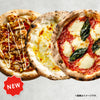 PIZZAREVO(ピザレボ)の人気NO.1の『マルゲリータピザ』と『クワトロフォルマッジ・ビアンカ』の3枚をセットにした食べ比べセット。