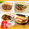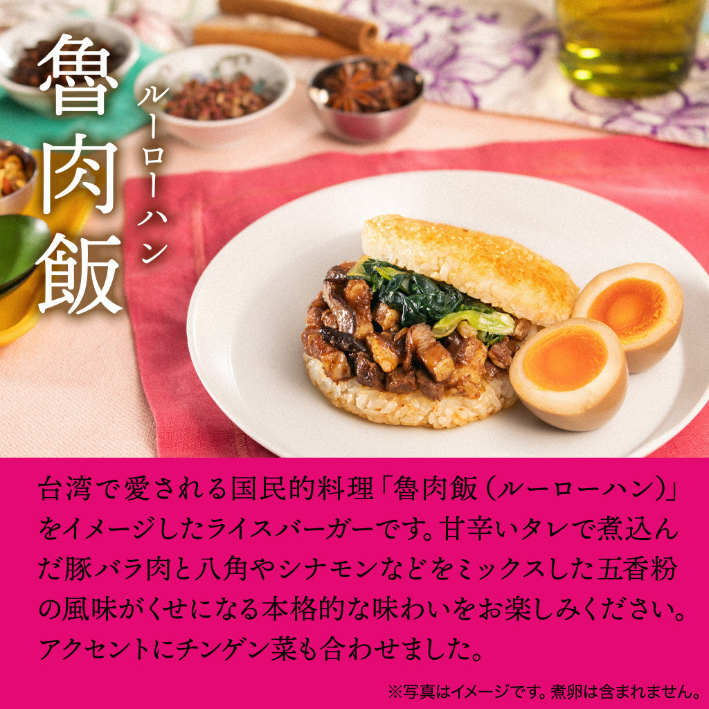 モスライスバーガーの焼肉、のり弁、魯肉飯(ルーローハン)、回鍋肉の4種類の味がお得にお楽しみいただけます!