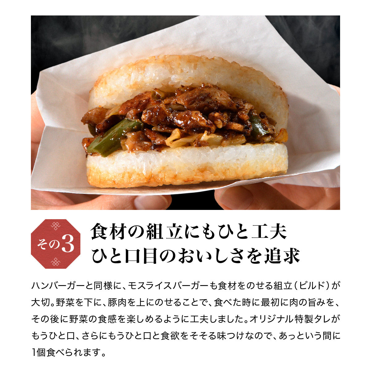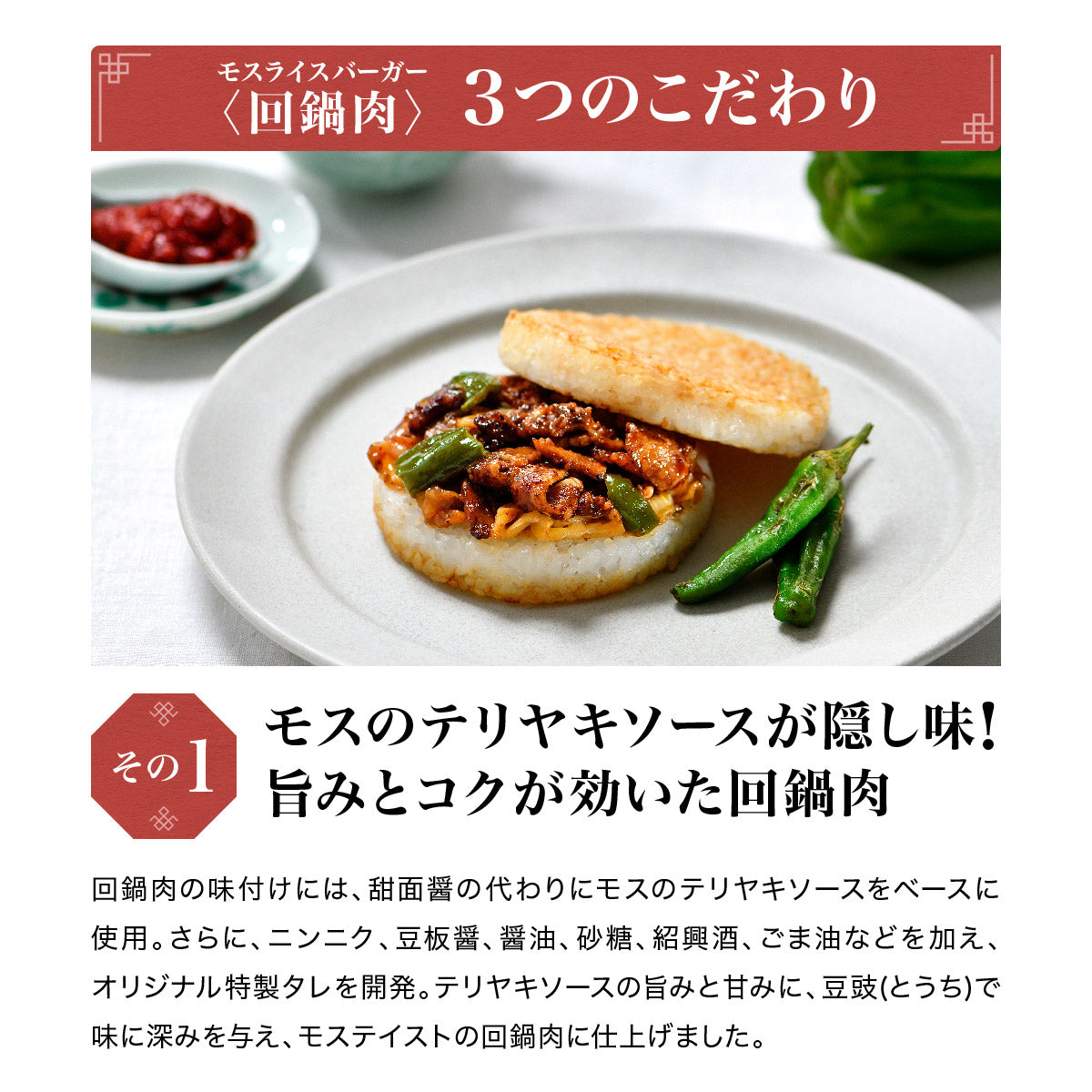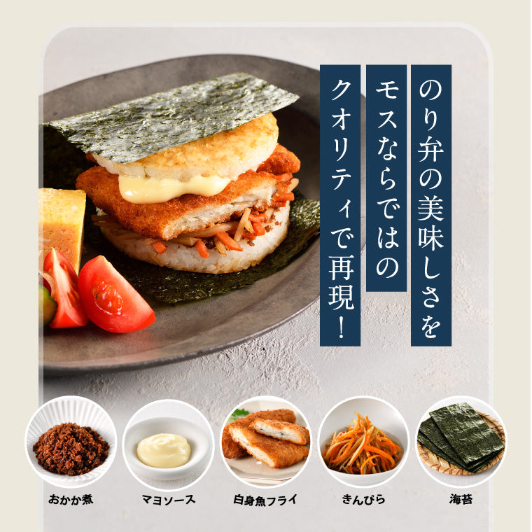 モスライスバーガーののり弁、回鍋肉の2種類の味がお得にお楽しみいただけます!
